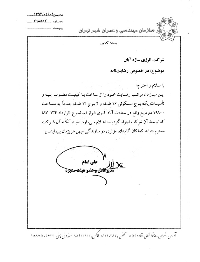 Unit 3, 3rd Floor, Abshar Complex, No. 233, Ferdos Boulevard, 2nd Sadeghieh Square, Tehran, Iran